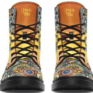 Yes We Vibe Colorful Hippie Van Boots, Size 6, Excellent Condition