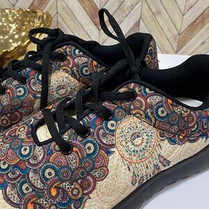 🪶 Yes We Vibe Mandala Dreamcatcher Sneakers – Boho Art Pattern Lace-Up Shoes 8.