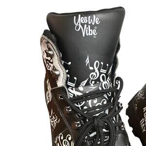 Yes We Vibe Music Note Combat Boots Black White NEW It’s Gonna Be a Good Day