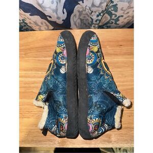 Yes We Vibe Peace Sign Hippie Slip On Faux Fur Lined Shoes, Size 8M. Smoke free home