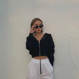 YesStyle Black Cropped Drawstring Hoodie