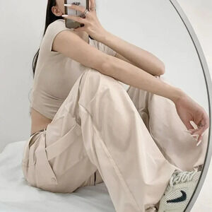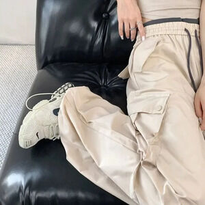 YesStyle Drawstring Street Cargo Pants, Tan, Size S Small / XS