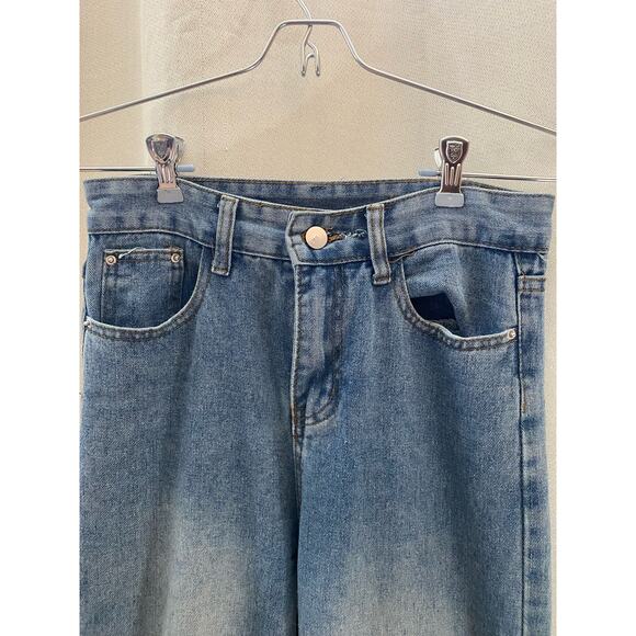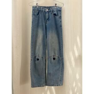 YesStyle InStudio High-Waist Heart Embroidery Wide-Leg Jeans w small
