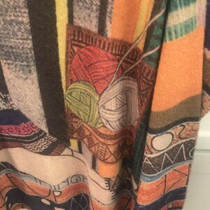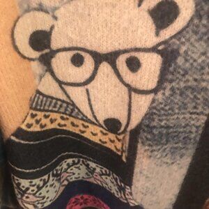 Yesno Bear Sweater Womens Large Abstract Print Wool Blend Artsy Loose Fit Boho