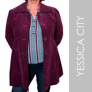 Imported from Brazil, this Yessica City coat brings European flair with a chic tailored cut and a bold plum shade that’s anything but ordinary. Made from a cotton-blend that resembles matte velvet, it’s fully lined with satiny polyester for added comfort. Perfect for fall layering, it dresses up jeans or adds polish over workwear. Classy, versatile, and a total conversation starter.