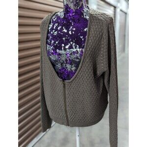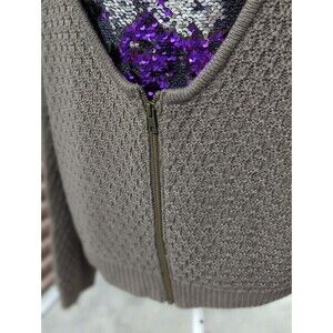 Yessica Size XL Beige Knit Scoop Neck With Zipper Sweater Cardigan