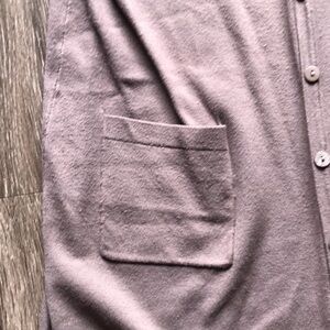 Used but in great condition. Yest cardigan with button up closure, buttons on sleeve,and two pockets on front. My camera isnt picking up the color well but its a grey color maybe close to toupe. Feel free to send offers and questions!
