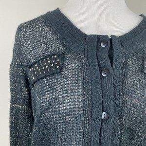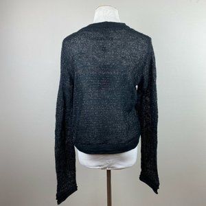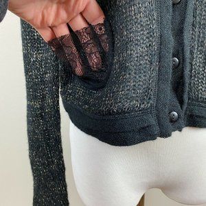 Yest Oxanna Cardigan Sweater 10 Women Open Knit Button Up Black Metallic Slightly Cropped New US M 10, EU L