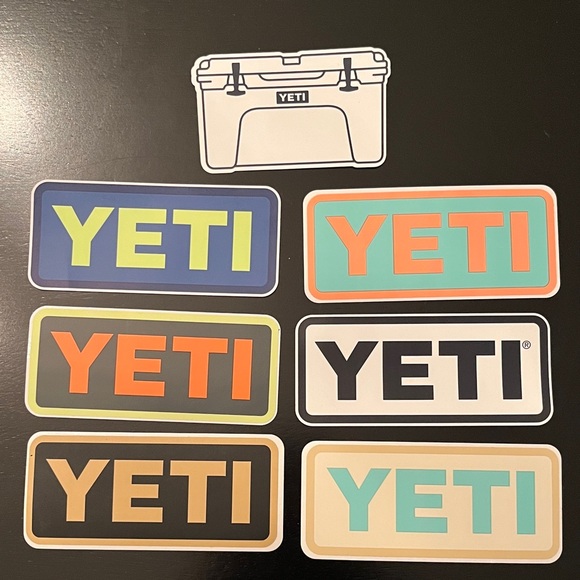 Set of YETI logo stickers in various colors. Perfect for customizing your gear.