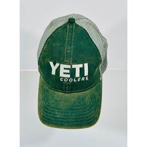 Yeti Coolers Green Mesh Trucker Hat Adjustable Snapback Distressed Unisex Cap