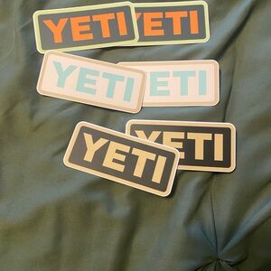 Vibrant Yeti logo stickers in various colors. Ideal for customizing your items.