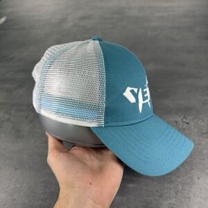 Yeti Snapback Hat Unisex Adult Teal Blue White Mesh Trucker Cap Fishing Hunting