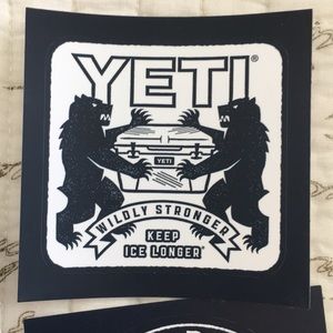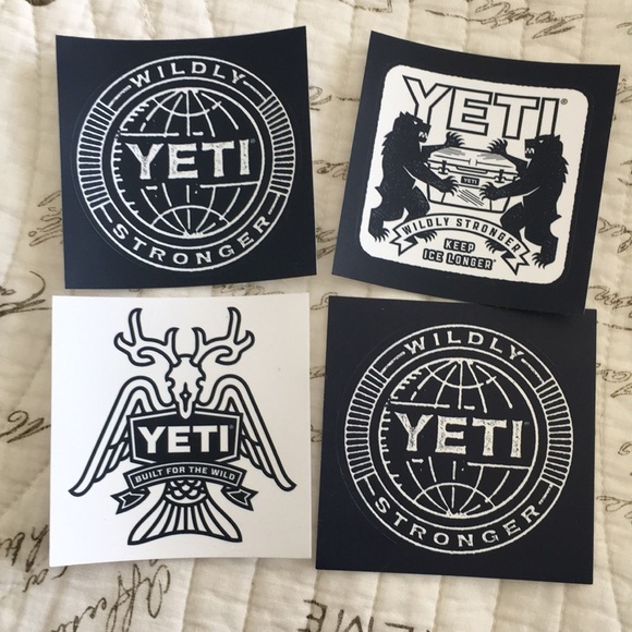 4 Yeti stickers. All official yeti stickers and brand new. Perfect for putting on the back window of your car or on a laptop. Cute and trendy!