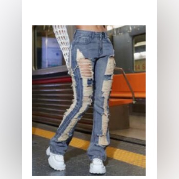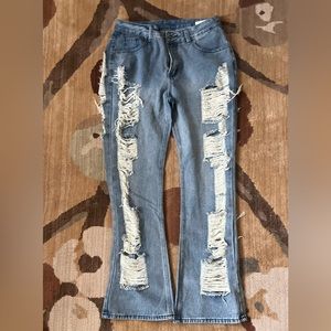I love these jeans! Never worn, only tried on. Size L (12). Rips in front and back.