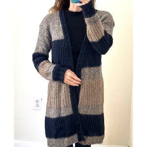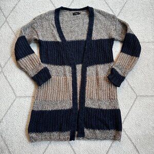 Yida Made in Italy Metallic Striped Open Front Cardigan Blue, Bronze & Silver