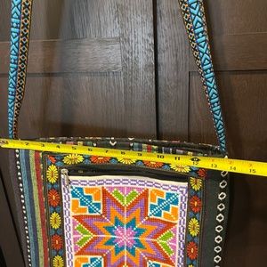 Super cute boho Hippie style bag-Used but in really good condition still. Some of the wood beads at bottoms are missing but still super cute. Inside is clean like not even used. Yidali name is on the zippers-Very Roomy and larger bag. Measurements in pics but Shoulder strap down to purse is approx 22", Purse length top end to end approx 14" and length of purse down to fringe is approx 15". Pocket in front and main purse