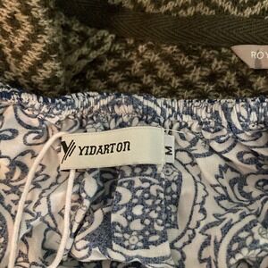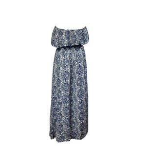 Yidarton Dress Womens Sz M White Blue Floral Print Strapless Ruffle Maxi