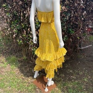 💋Yidarton Strapless Split Bottom Ruffle Top Midi Dress Size Small
