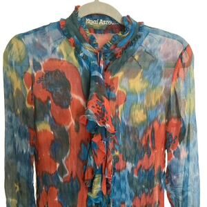 100% Silk Yigal Azrouel, Sheer Color Splash Blouse