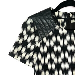 Yigal Azrouel Black & Cream Printed Leather Sheath Bodycon Dress 2 Women’s