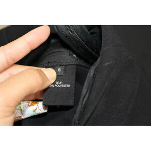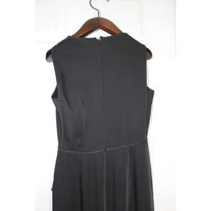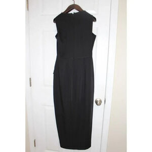 Sleevless vented shoulder-hidden back zip and hook closure.