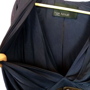 Pre-owned and in good condition, Yigal Azrouel Maxi Gown Womens 3 Blue Deep V Draped Rayon Dress Greek Bridal Y2K Vintage. 100% Rayon. Lined. Over $1200 MSRP.