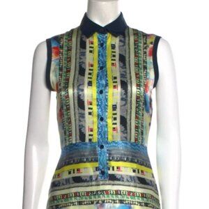 Yigal Azrouel Multicolor Abstract Neon Collared A-Line Shirtdress XS (Orig $450)