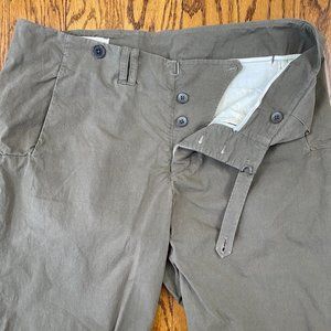 Yigal Azrouel Olive Long Cotton Cuffed Shorts Size 31; missing button, otherwise in Excellent Condition. 100% Cotton; Made in USA; very soft fabric; truest representation of color is in full length photos. Length: 22.5"; Inseam: 11.5"; Bottom hem width: 11.5"