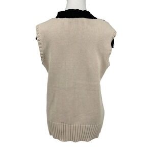 Yigal Azrouel Sweater Sleeveless Crochet Fringe Tassel Neck Cream Black Large