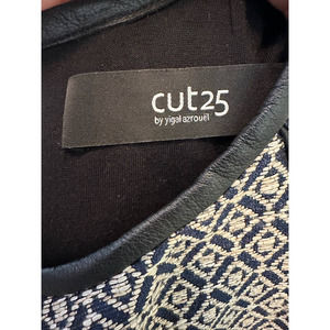 CUT25 Yigal Azrouel Two Tone Jacquard Leather Scuba Paneled Pencil Dress size 6