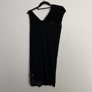 Yigal Azrouel Women’s NWT Black Ruched Leather Detail Dress Size 10.