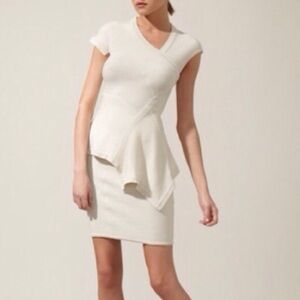 Beautiful Yigal Azrouel Wool blend dress. Size small. Peplum. Cap sleeve. Elegant. Asymmetrical. Zipper down back