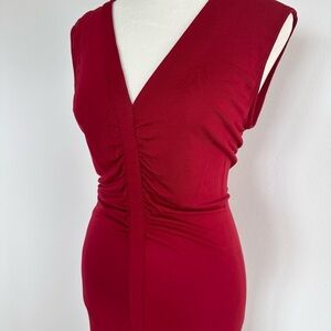 Yigal Azrouel ruched from V-neck sleeveless slinky knit red dress