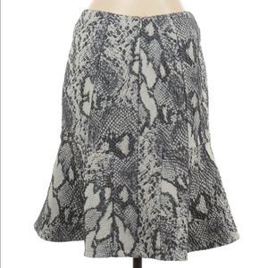 Yigal Azrouel grey and white 3D snakeskin print fit and flare skirt. Does not appear to have been worn. Manufacture flaw on faux leather panel see pics.