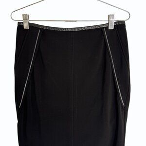 Yigal Azrouël Leather Trim Mini Skirt Size 6 Exposed Zippers Edgy Office Siren