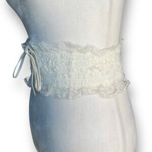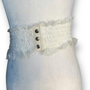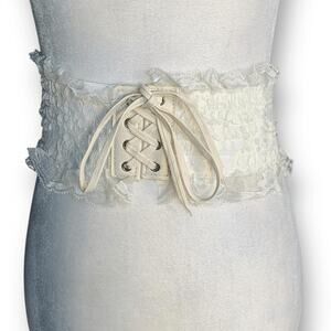 Yik Fung Vintage Y2K Cream Lace Corset Belt Leather Accents Statement