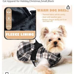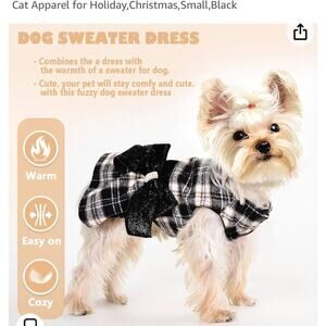 Yikeyo Black Plaid Dog Dress with Bling Bow Small Soft Warm Size Small