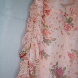 Yilibasha sheer pink floral dress with lining with ruched sides NWT