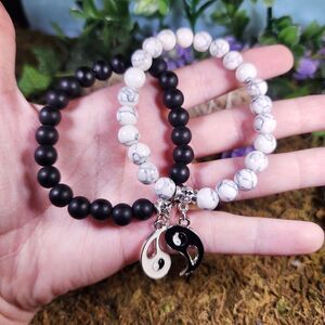 Yin Yang Howlite & Black Agate Couple's Bracelets #9
