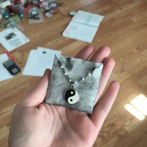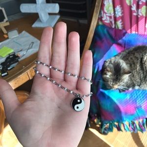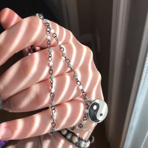 White turquoise beaded chain necklace with sterling silver ying yang charm!