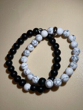 Symbolic Contrast: Each bracelet includes one contrasting bead (a white Howlite bead on the black bracelet, and a black Onyx bead on the white bracelet) to symbolize that each person holds a piece of the other.