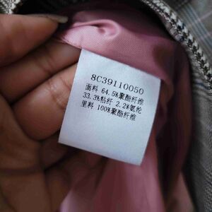 Features: Plaid pattern, Pink buttons, Double-breasted, Notched lapel, Long sleeves
