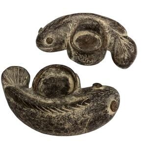 Ying and Yang Koi Votive Candle Holders Approximately 6.5 inch Clay Tan Brown