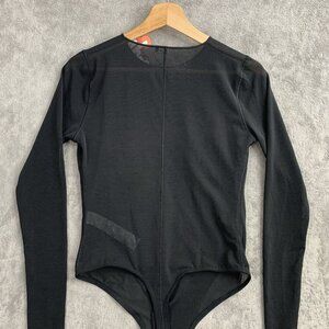 Yitty Bodysuit Womens Medium Mesh Me Smoothing Sleeved Thong Suit Black Top