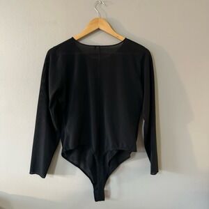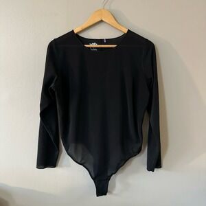 Yitty Mesh Me Smoothing Sleeved Thong Bodysuit Size 1X Black