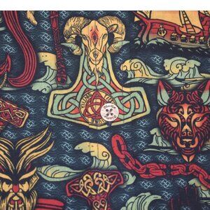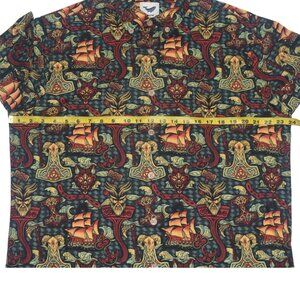Yiume Viking Hawaiian Shirt Pirate Night Button-Down Short Sleeve Cotton Aloha L