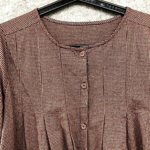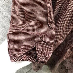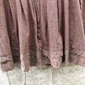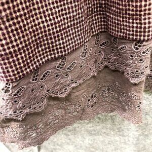 Yiyi Boho Peasant Tunic Top Crochet Hem Button Front Pleated Burgundy Plaid