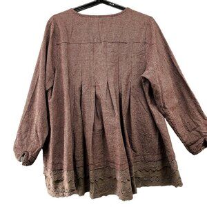 Yiyi Boho Peasant Tunic Top Crochet Hem Button Front Pleated Womens M