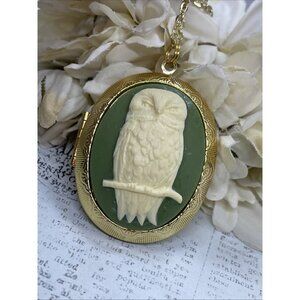Ylw Gold Photo Locket Necklace Birthday Gift Green Owl Barn Tree Hoot Fall Mom