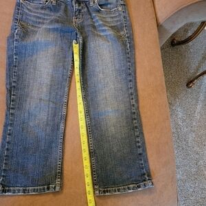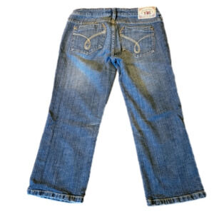 YMI Medium Wash Stretch 5 Pocket Style Capri Some Wear Distressed on Hem and Waist Good Pre-owned Condition